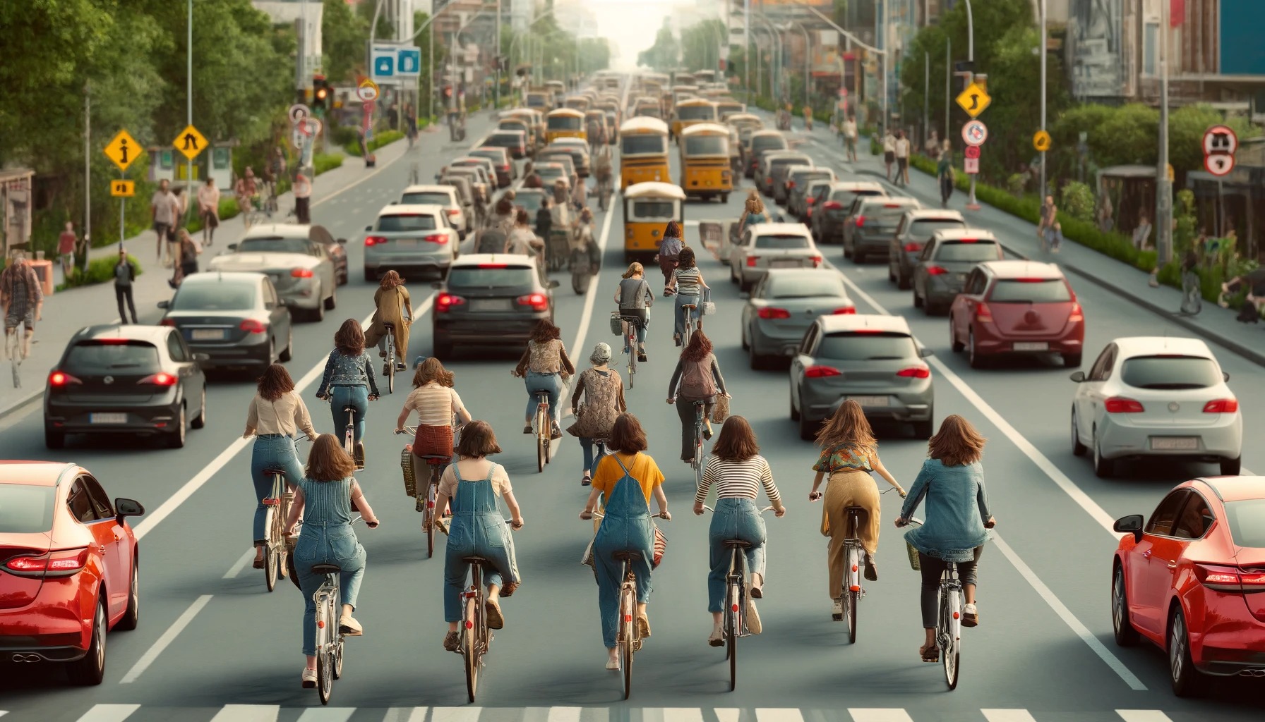 【悲報画像】女さん、チャリで横一列逆走。。。