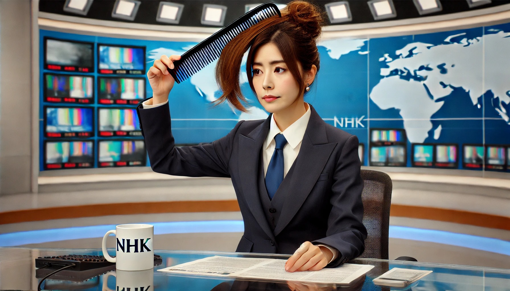 【放送事故】NHKの女性アナウンサー、髪に櫛を刺したままニュースを読んでしまうwwwwwwww