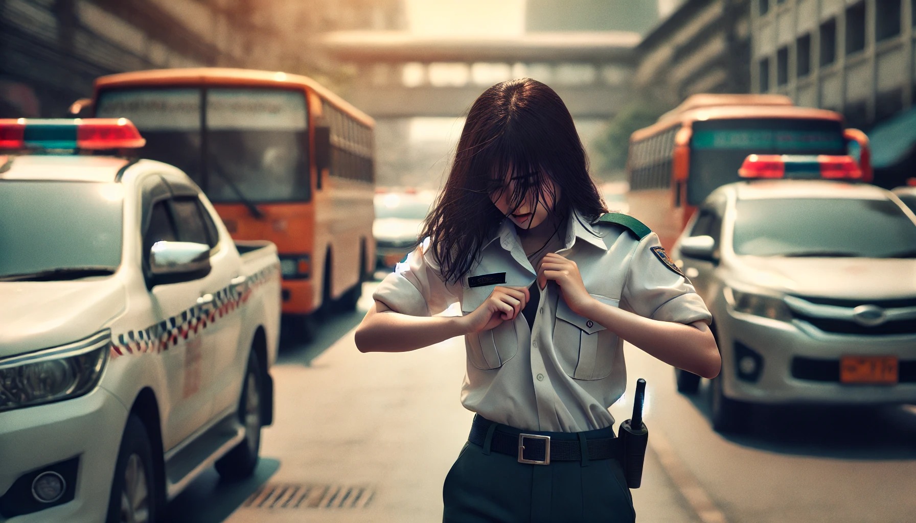 【画像】交通整理の女の子、暑さのあまり路上で脱いでしまう