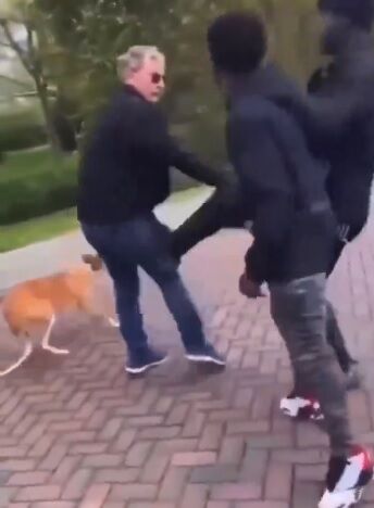 【動画】移民黒人、大笑いしながら意味もなく犬の散歩中のヨーロッパの老人を蹴り倒す
