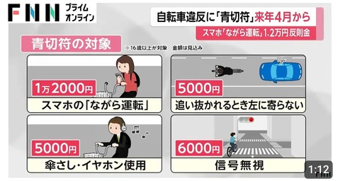 自転車の反則金が来年から開始 『ながら運転』1.2万円、『傘差し、イヤホン』5000円、『2人乗り』3000円