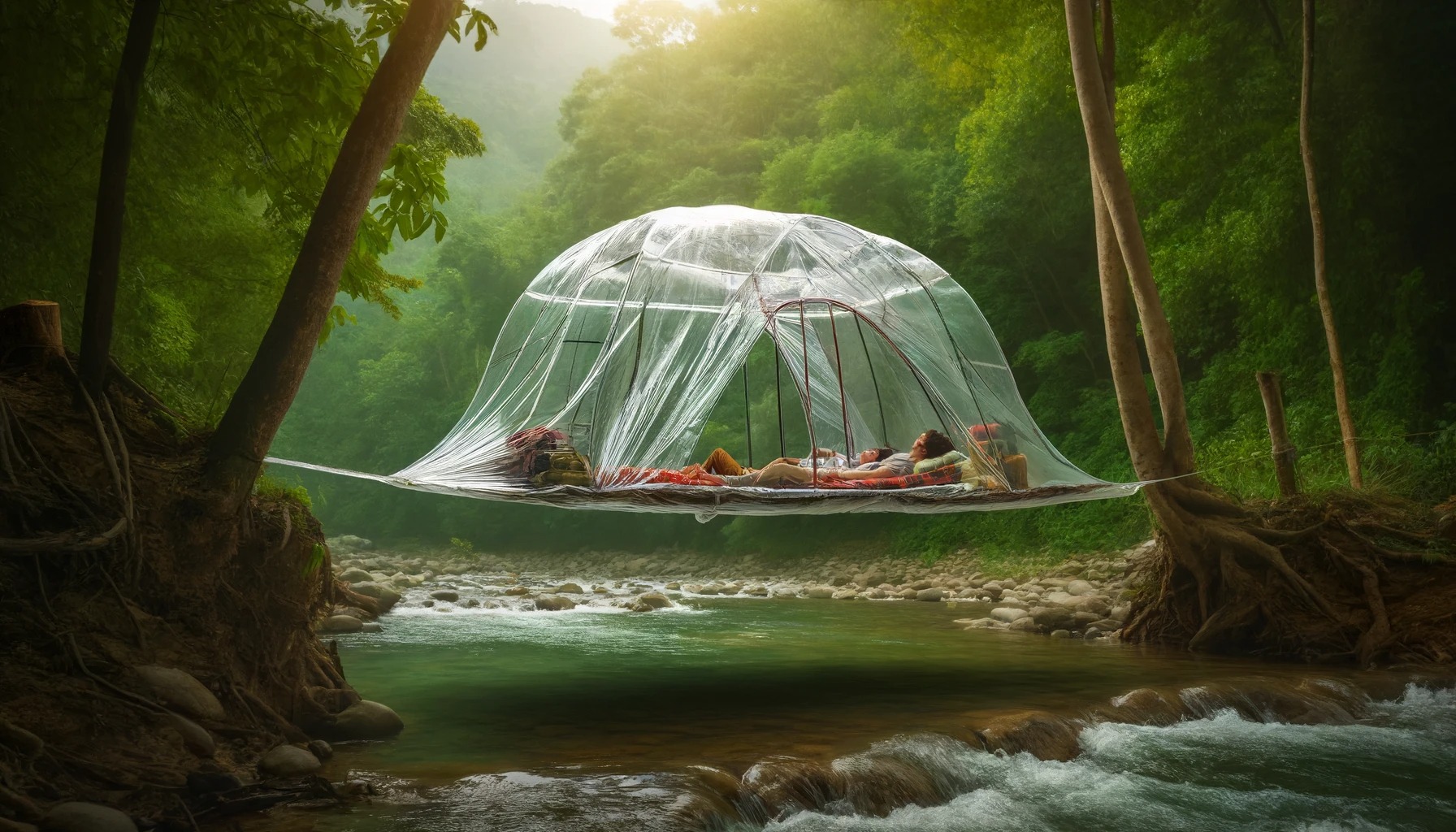 【動画】川の上にラップでテント作ってみた結果wwwwwwwwwwwwwwwww