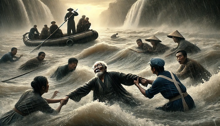 【悲報動画】川に溺れた中国人のおじさん、懸命の救助の甲斐なく流される