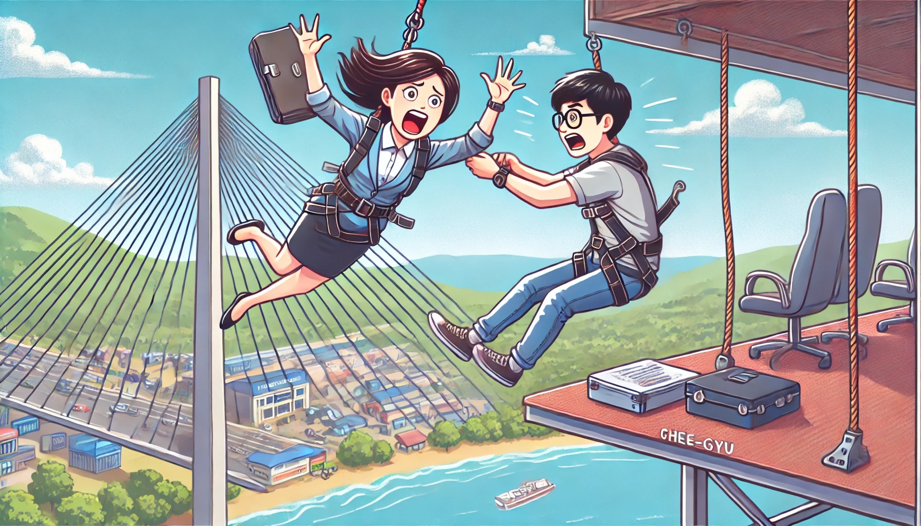 【動画】女さん 隣のチー牛を巻き添えにしてバンジージャンプしてしまう