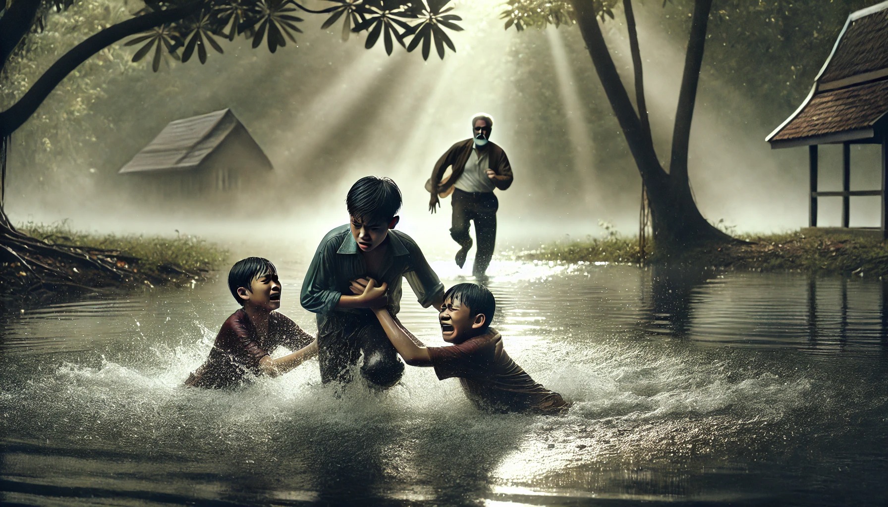 【衝撃映像】池で遊んでいたオスガキ3人が溺死しかけるも、猛ダッシュでオジサンが助けにくる