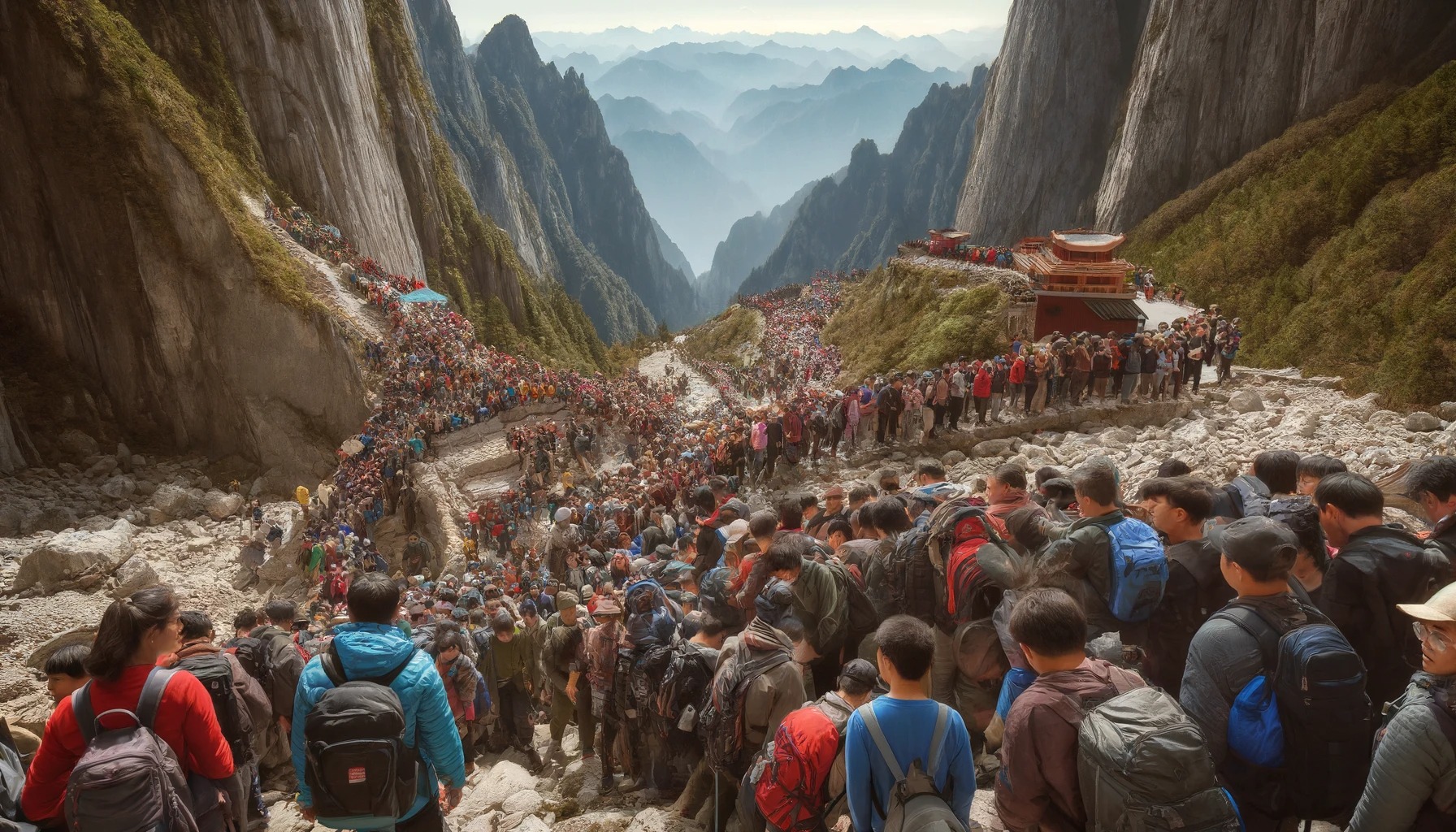 【地獄絵図】中国の登山ルート、予約数を見誤ってとんでもない事になる。。。