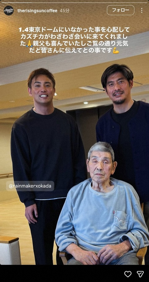 坂口憲二 83歳の父・征二さんの近況報告「ご覧の通り元気だと…」オカダ・カズチカとの再会ショットも