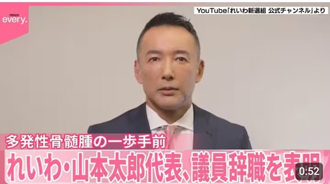 【悲報】れいわ新選組、元タレント山本太郎氏・議員辞職発表「多発性骨髄腫血液のがん その一歩手前 自分の命を守る行動に入る」