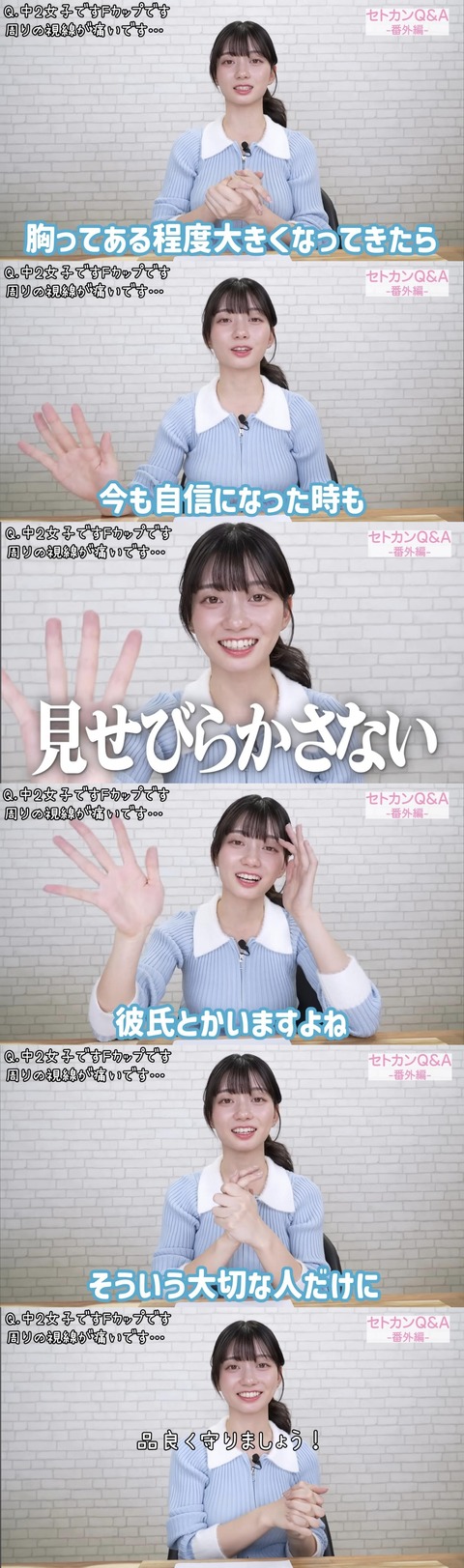 【画像】FカップJC「男子の視線が気になります…」瀬戸環奈「おっぱいは大切な人にだけ見せてあげて」