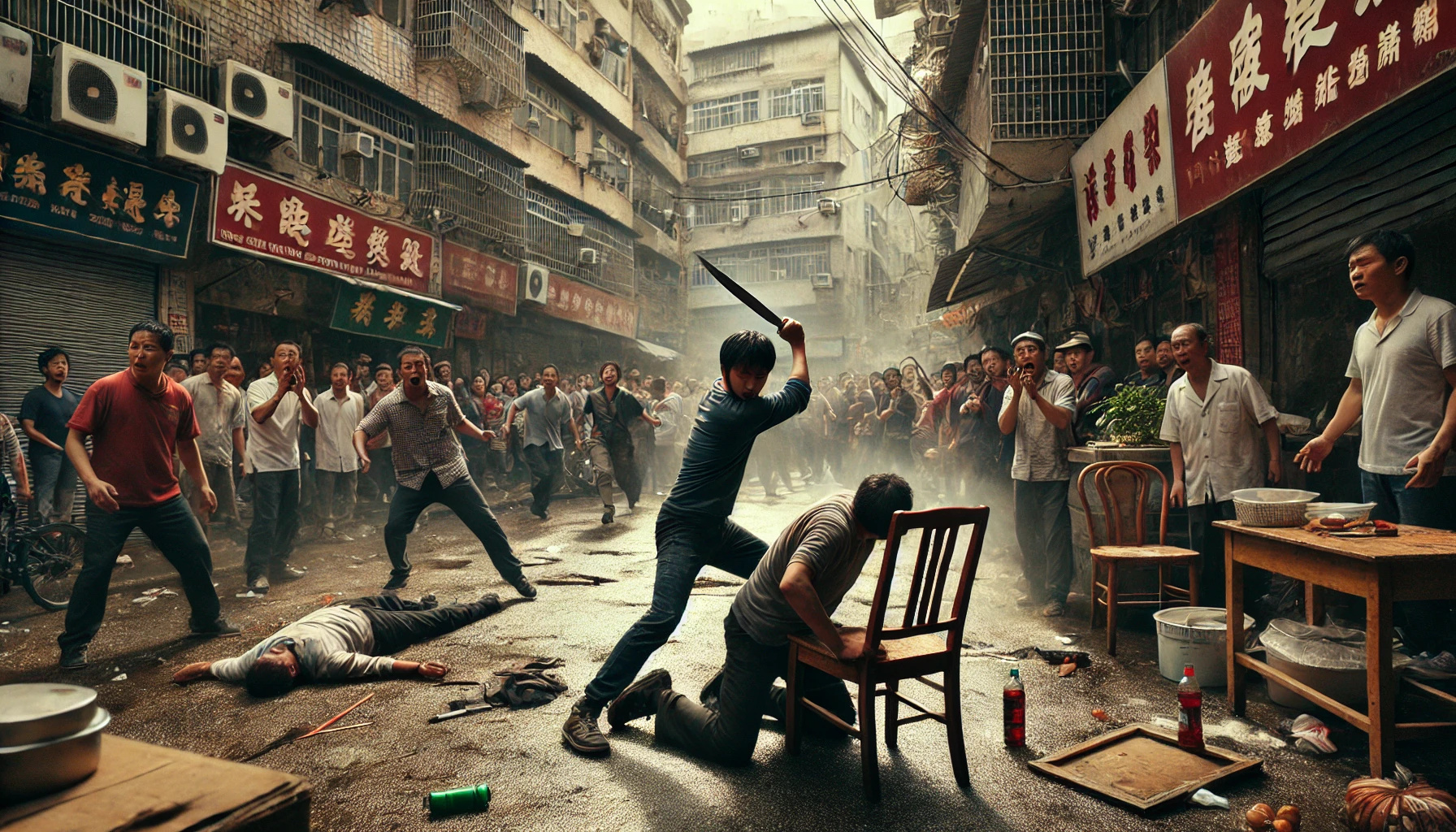 【公開処刑】中国で包丁を持った男が大暴れ→現地住民に椅子で殴り潰されるwwwwww